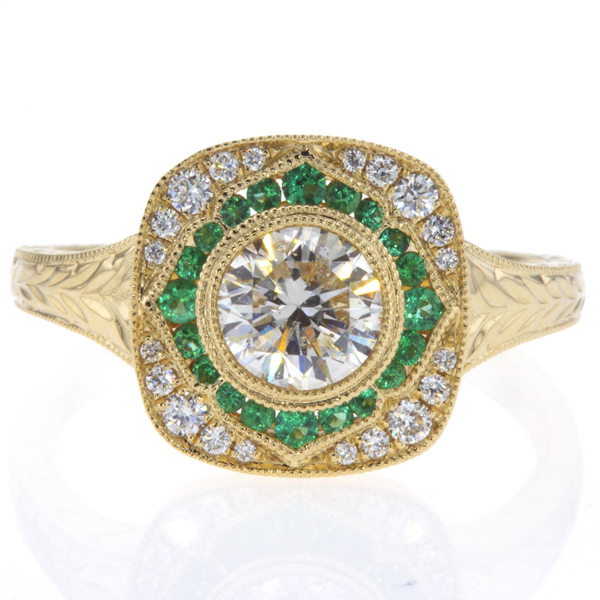 Gem Lab Vintage-style Diamond & Emerald Ring