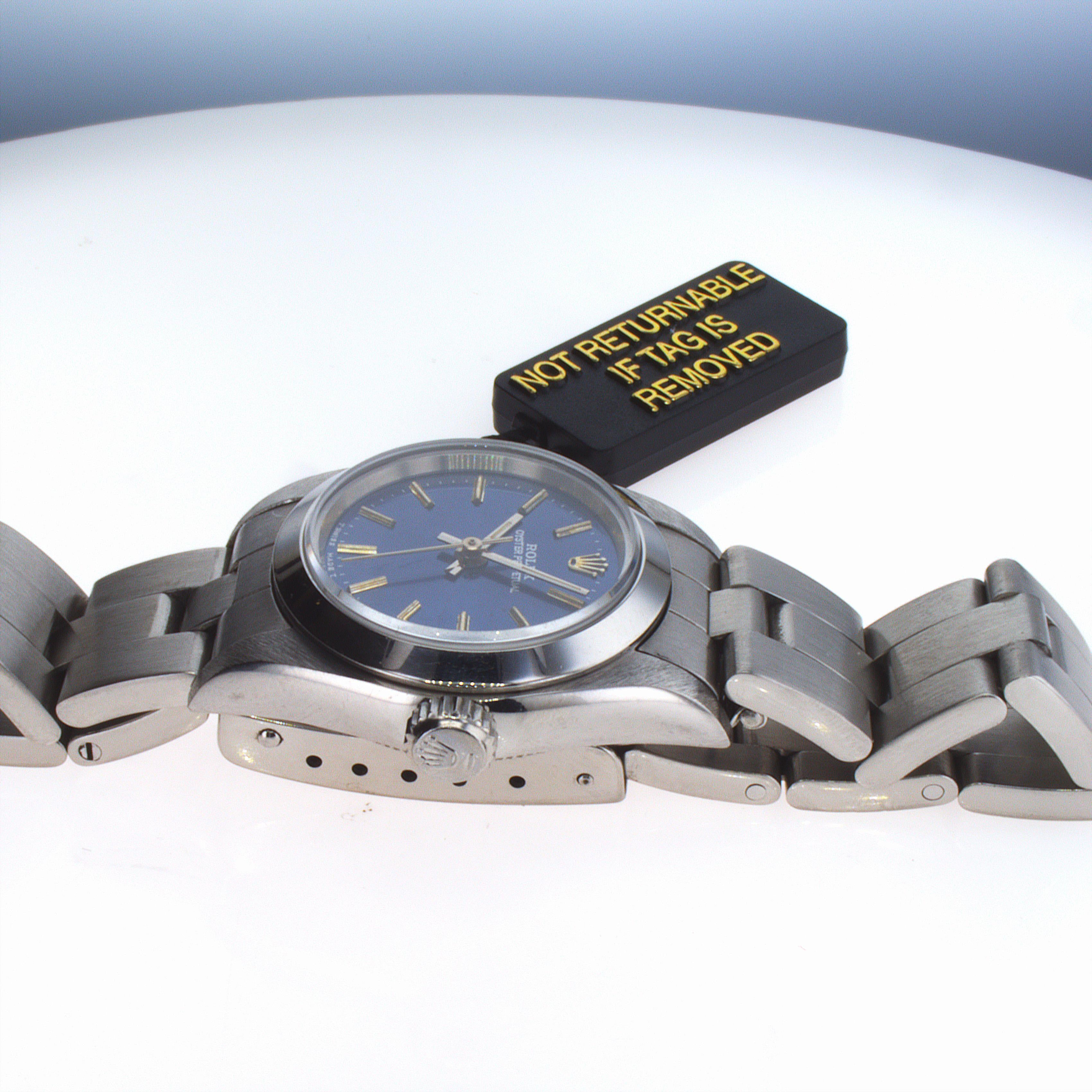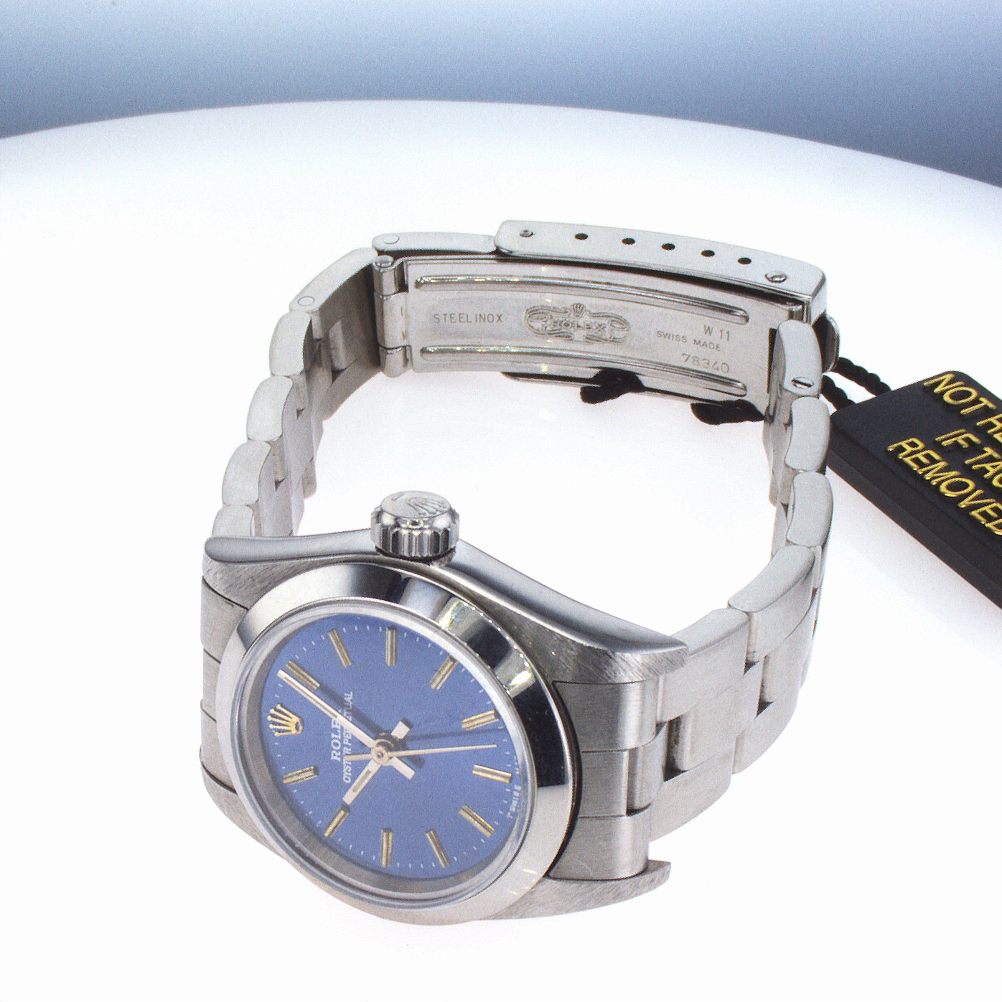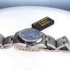 The Rolex presents a refinished blue dial and is noted to be in very good condition and working order. Note that as a consignment piece, this pre-owned watch offers an opportunity to own a luxury timepiece with a unique history.