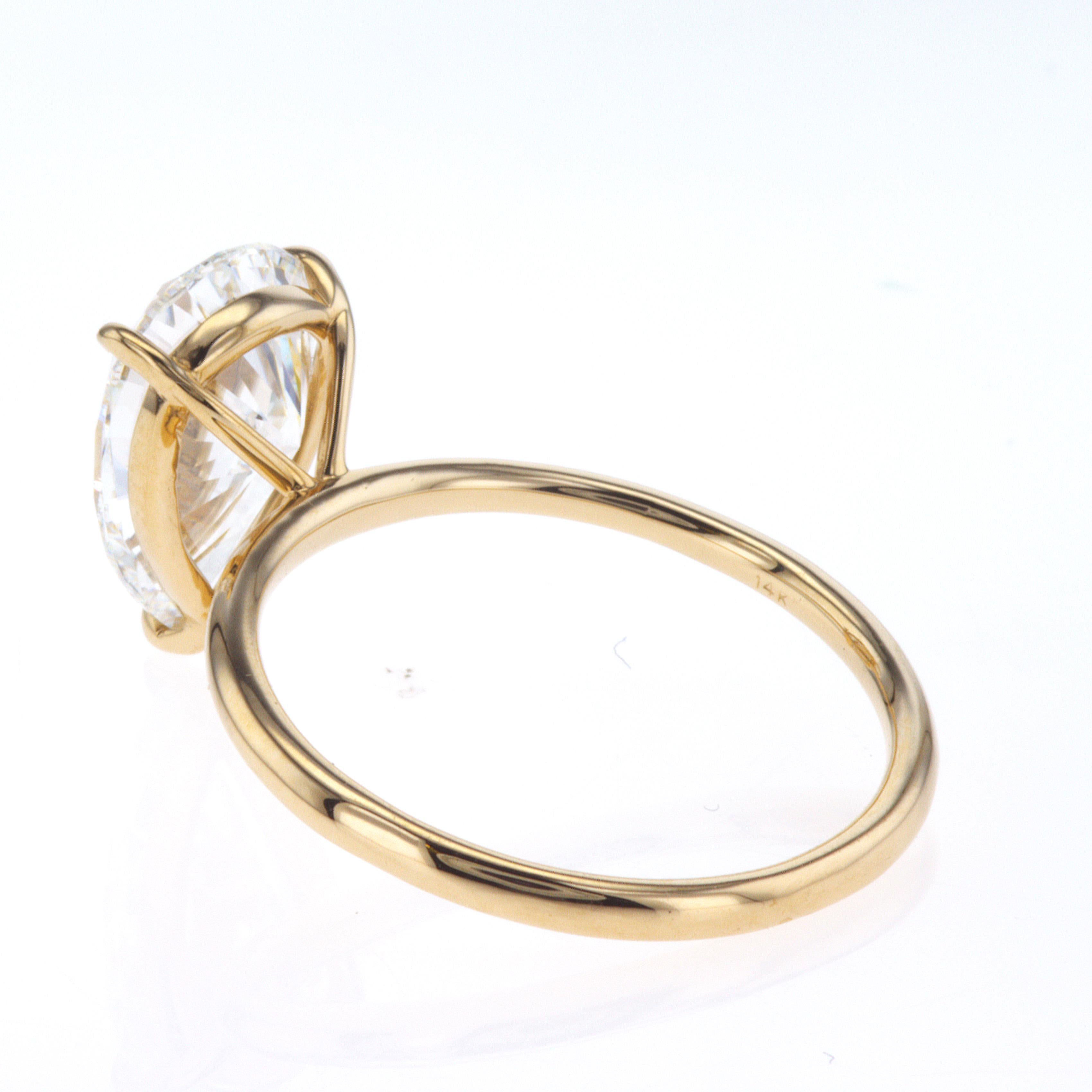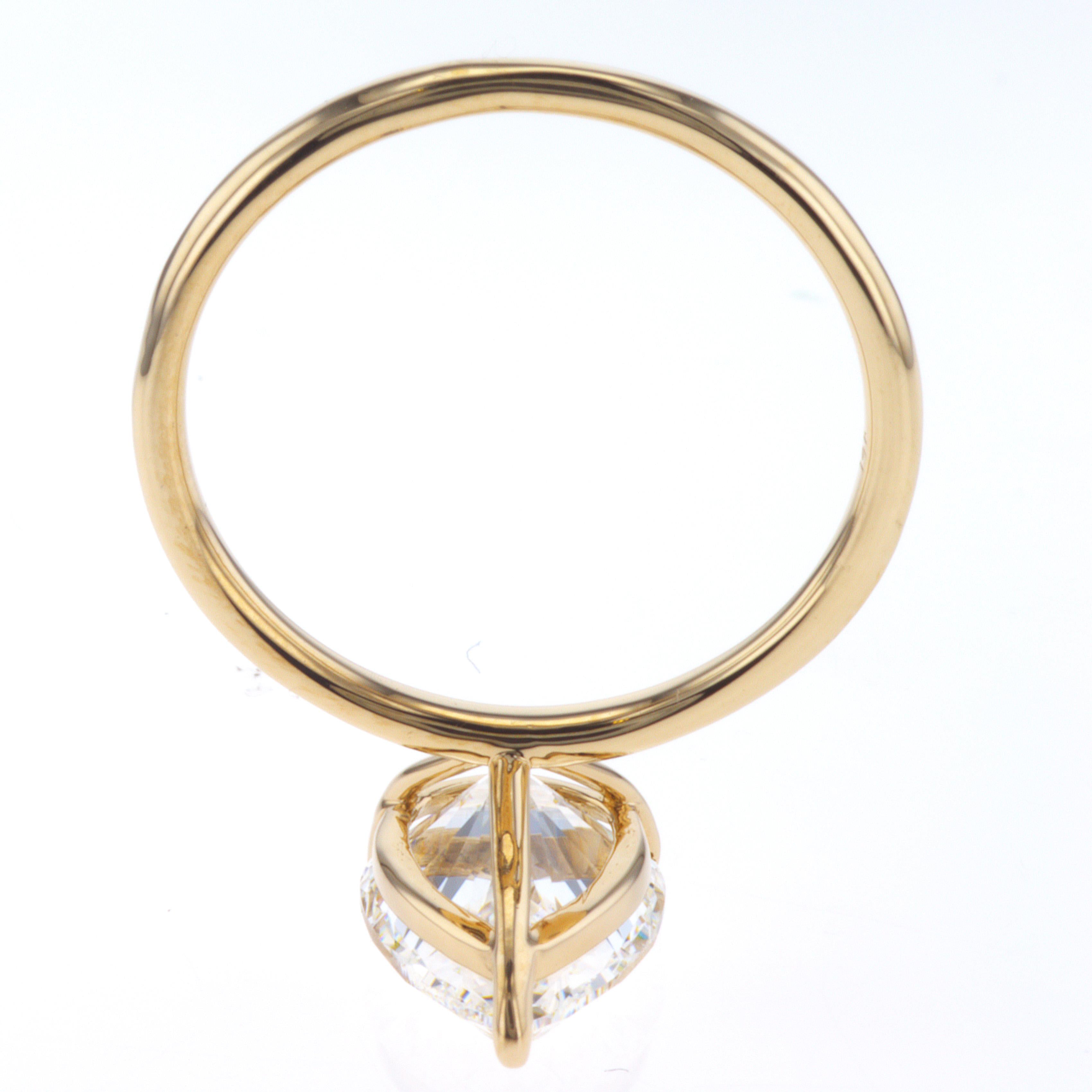 The solitaire setting is crafted from 14kt yellow gold, providing a warm and classic complement to the dazzling diamond. This pre-owned piece offers a unique opportunity to own a high-quality diamond ring at an exceptional value.