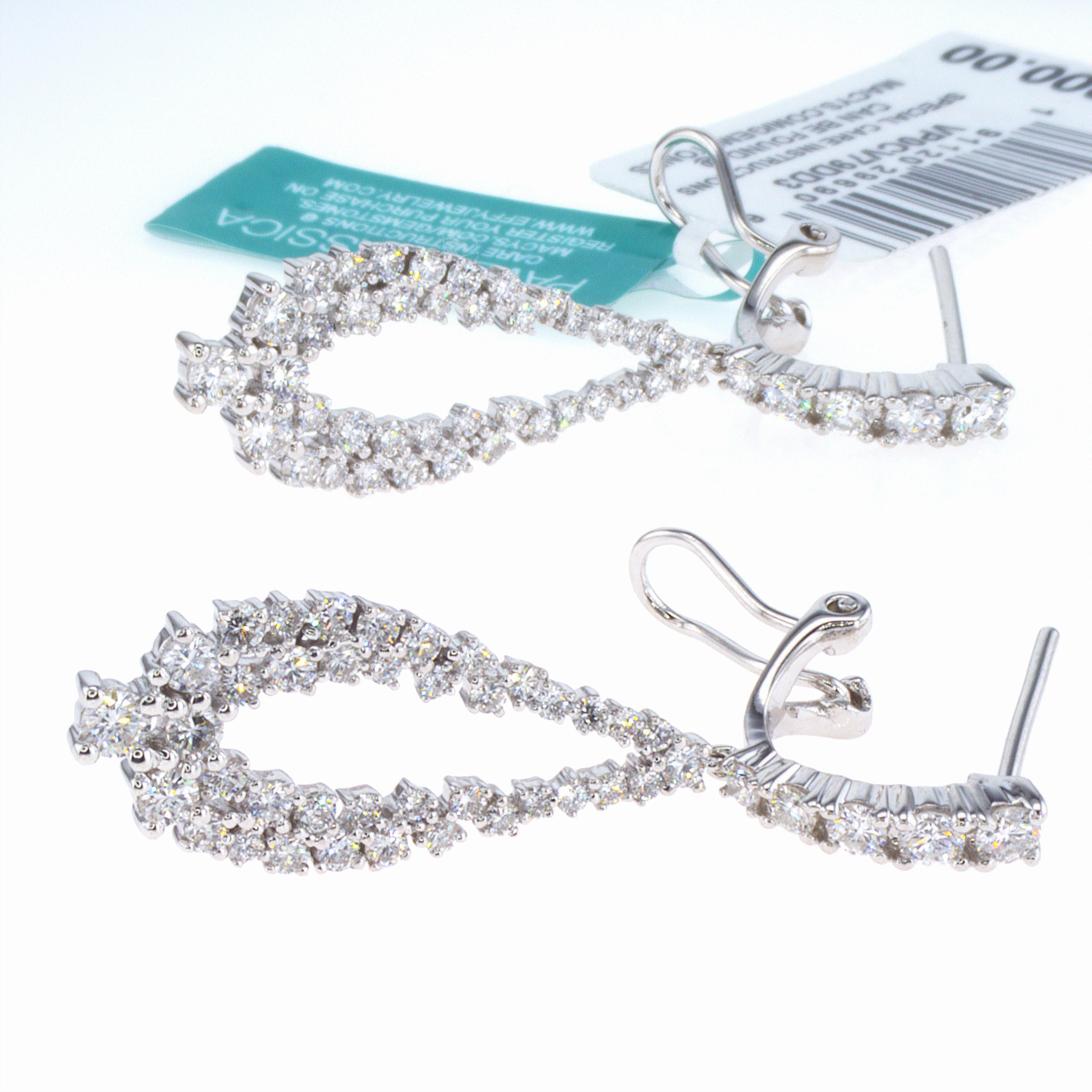 Discover the allure of pre-loved luxury with our Consignment Diamond collection. Behold, stunning 14KT white gold diamond fashion earrings by EFFY. These dangle earrings, boasting 2 1/6CT TW of round diamonds, await to redefine your sparkle.