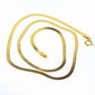 Crafted in radiant 14KT yellow gold, this necklace features a fluid 2.1mm herringbone chain measuring a delicate 14 inches. Securely fastened with a lobster claw clasp, it rests gracefully against your skin, catching the light with every movement.