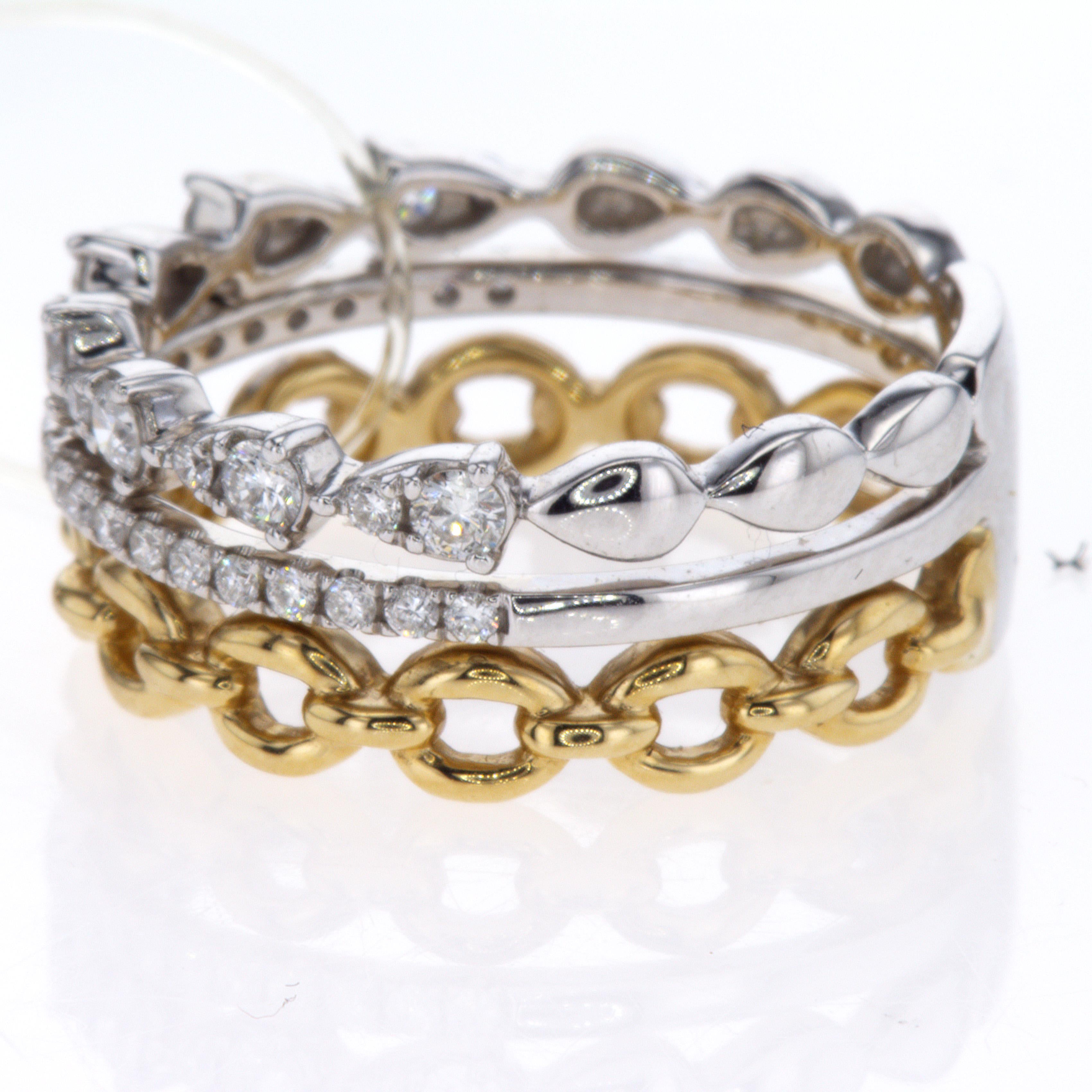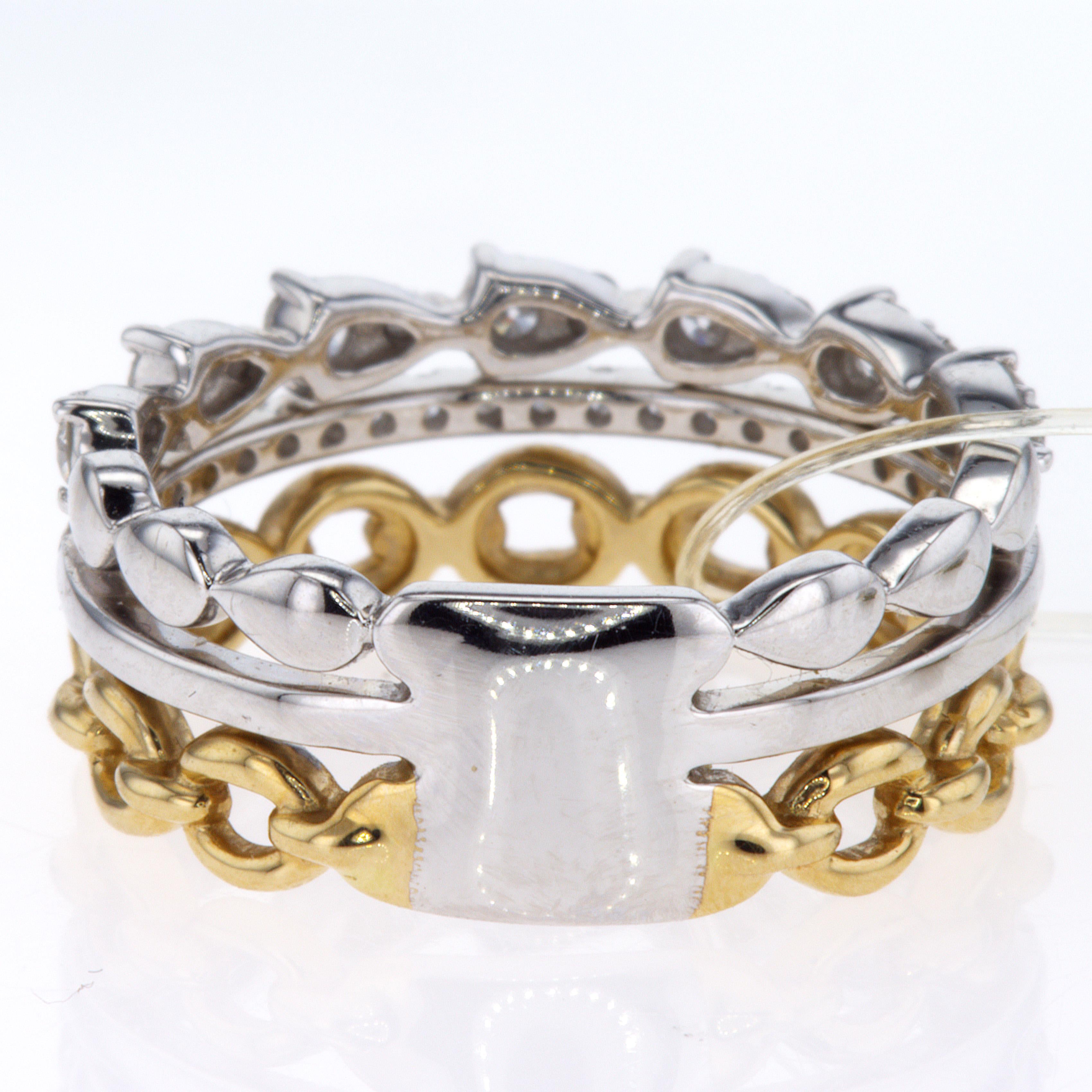 From our exclusive "DILAMANI" collection, this 14KT yellow gold ring features a chic open chain link design, perfectly contrasted with two shimmering white gold diamond bands totaling .45 carats.