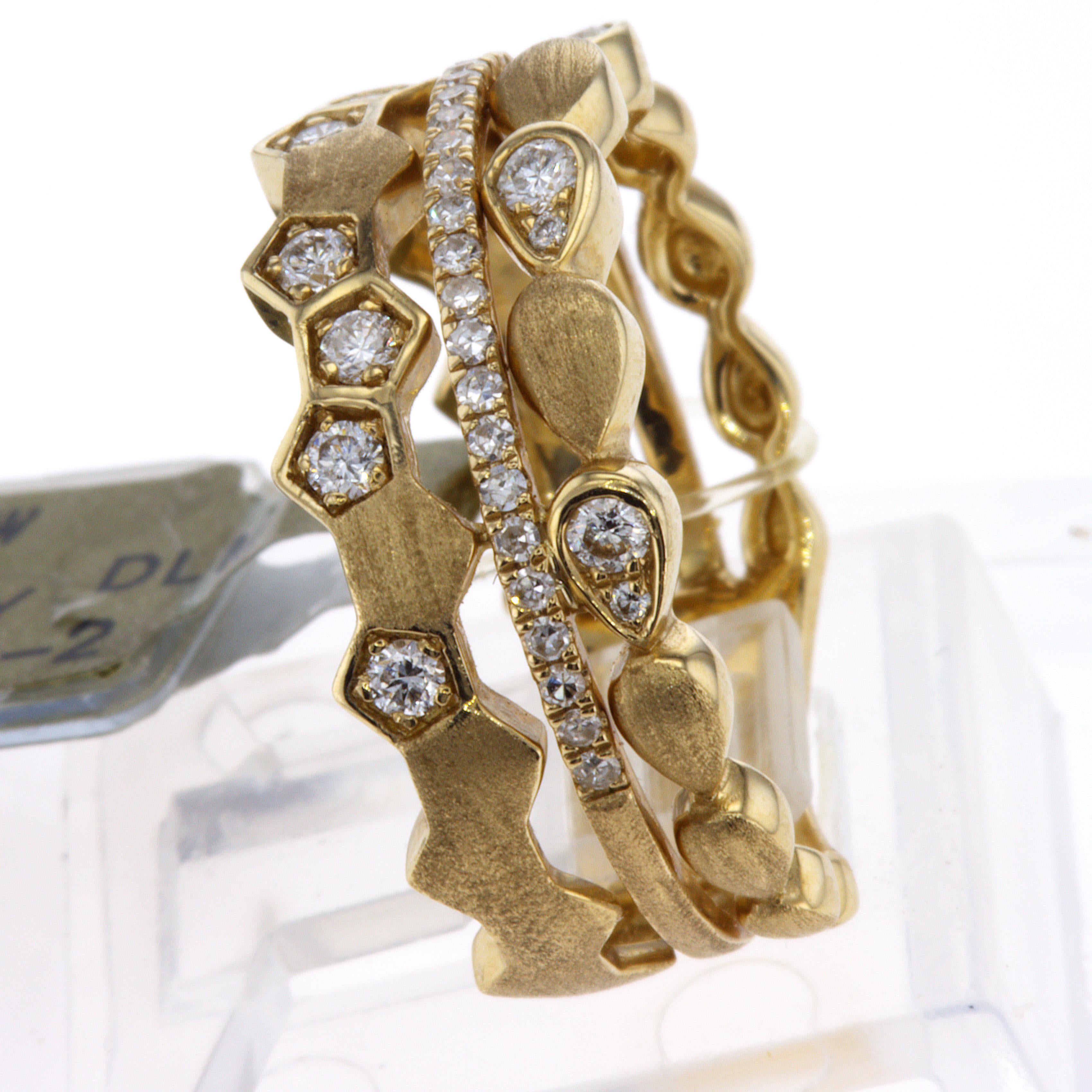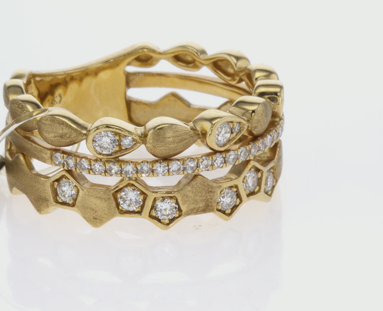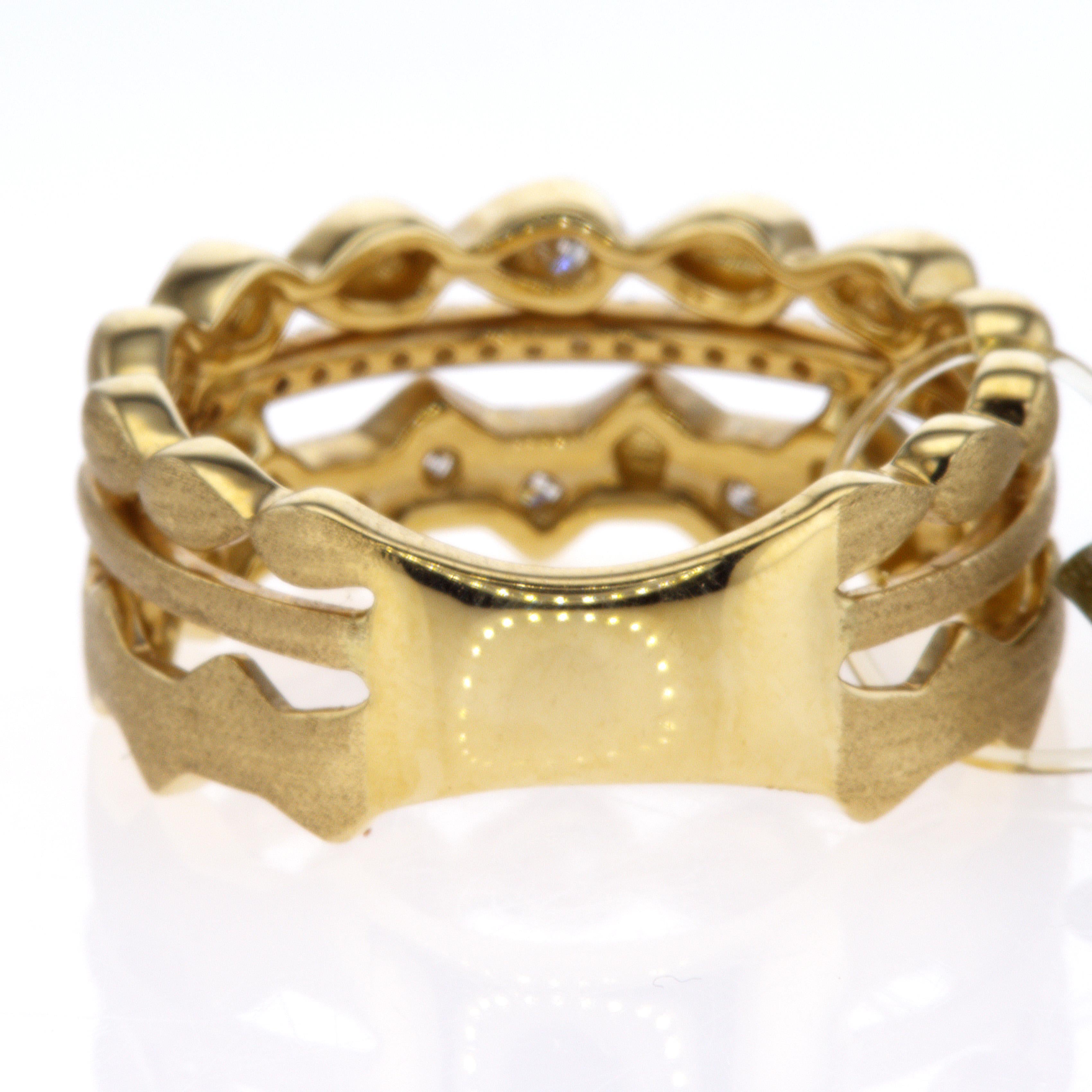 Dare to be different with this stunning diamond ring from the "GEM LAB" DILAMANI collection. Style AA85112D-208Y boasts a contemporary design featuring three bands of exquisite 14KT yellow gold, showcasing a unique satin finish.