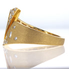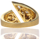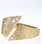 Experience the thrill of the "Confetti" design. This ring features a unique 5-row crossover split that tapers beautifully and boasts a luxurious satin finish.