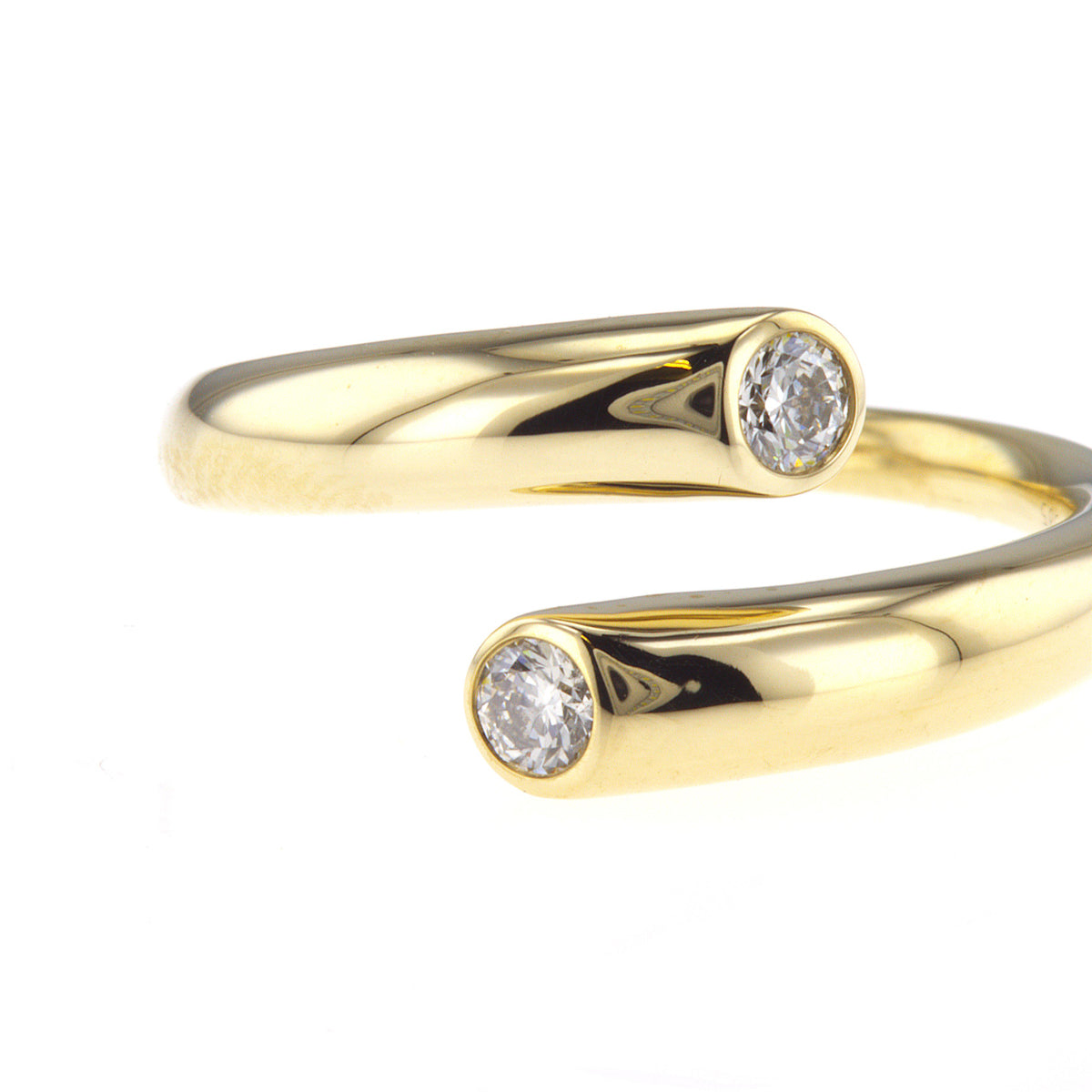 Unleash your inner radiance with the "Gem Lab" Diamond Bypass Ring by Facet Barcelona USA. This exquisite piece features a modern, open design crafted in luminous 14kt yellow gold.