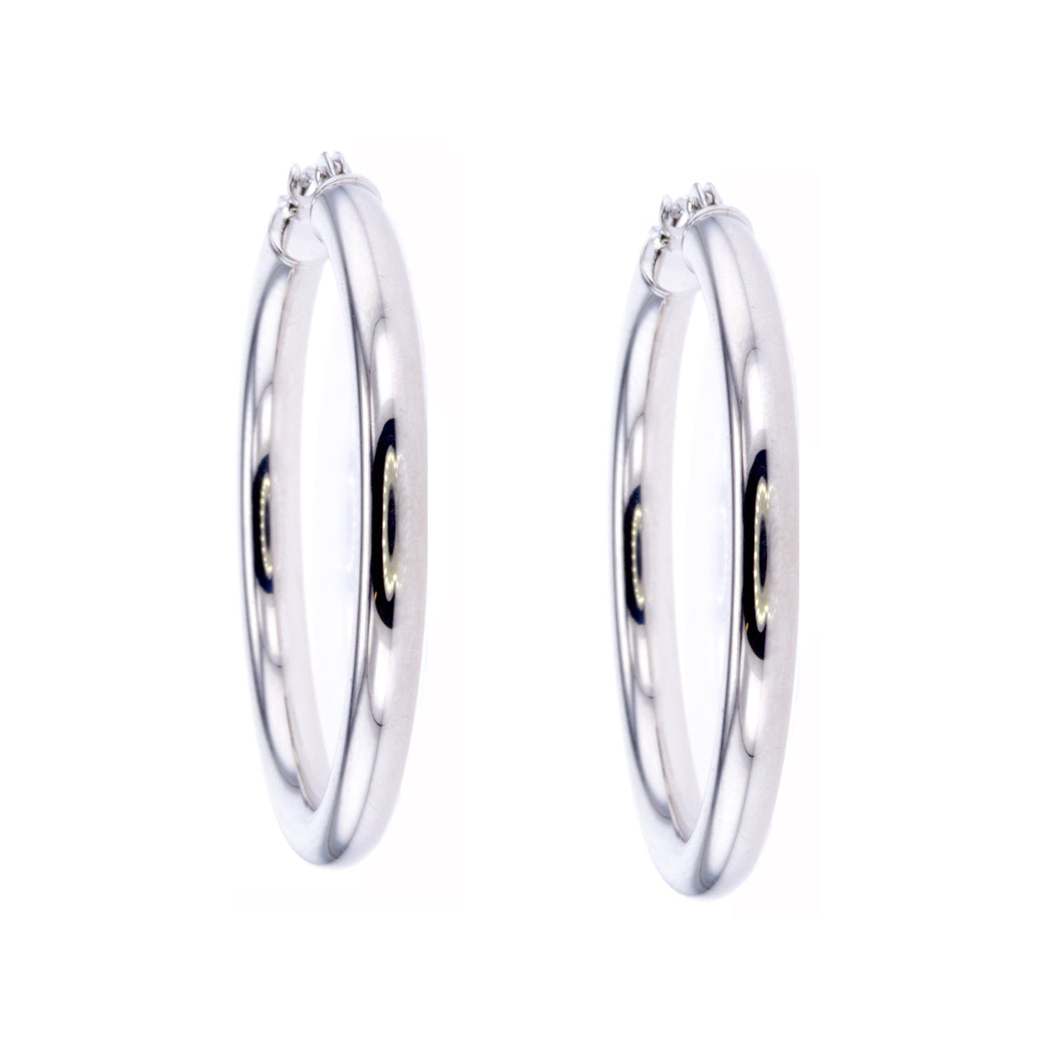 From The "Gem Lab" Collection: 14Kt White Gold 3.3Mmx30Mm Round Tube Hoop Pierced Earring