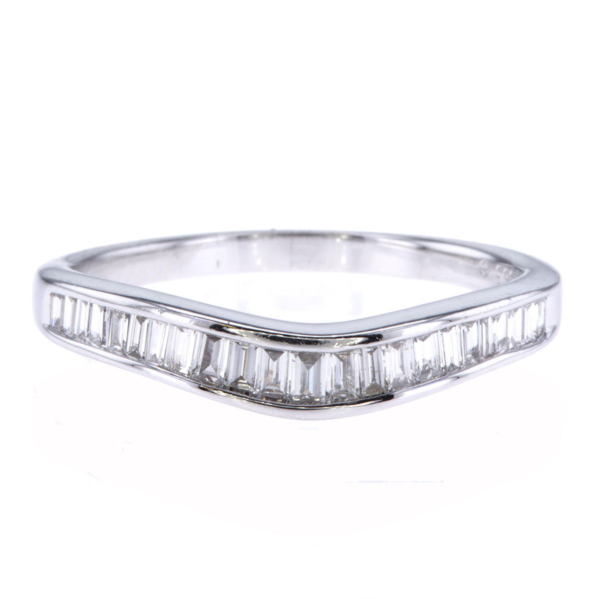 14Kt White Gold Pair Of Channel Set Baguette Curved Diamond Band