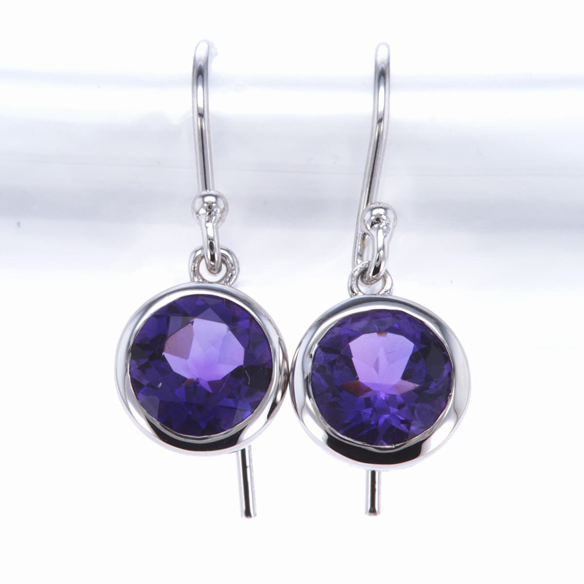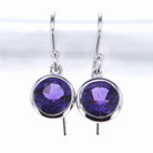 Sterling Silver 6MM Round Bezel Set Amethyst Drop Shepardshook Pierced Earrings