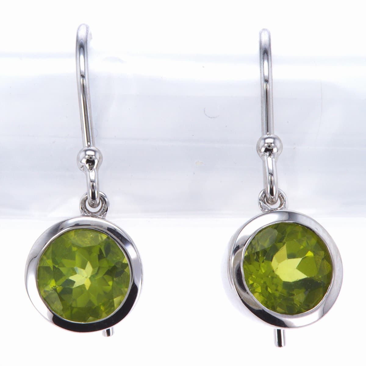Sterling Silver 6MM Round Bezel Set Peridot Drop Shepardshook Pierced Earrings